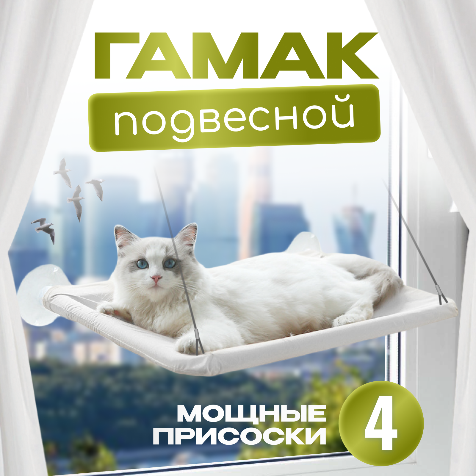 Подвесная кровать гамак для кошек и собак белый с креплением на окно / подвесная лежанка на присосках на окно информация: