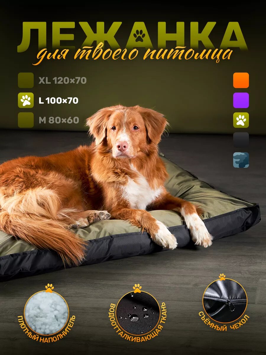 Лежанка антивандальная для крупных собак и кошек 100*70 см Хаки олива / черный информация: