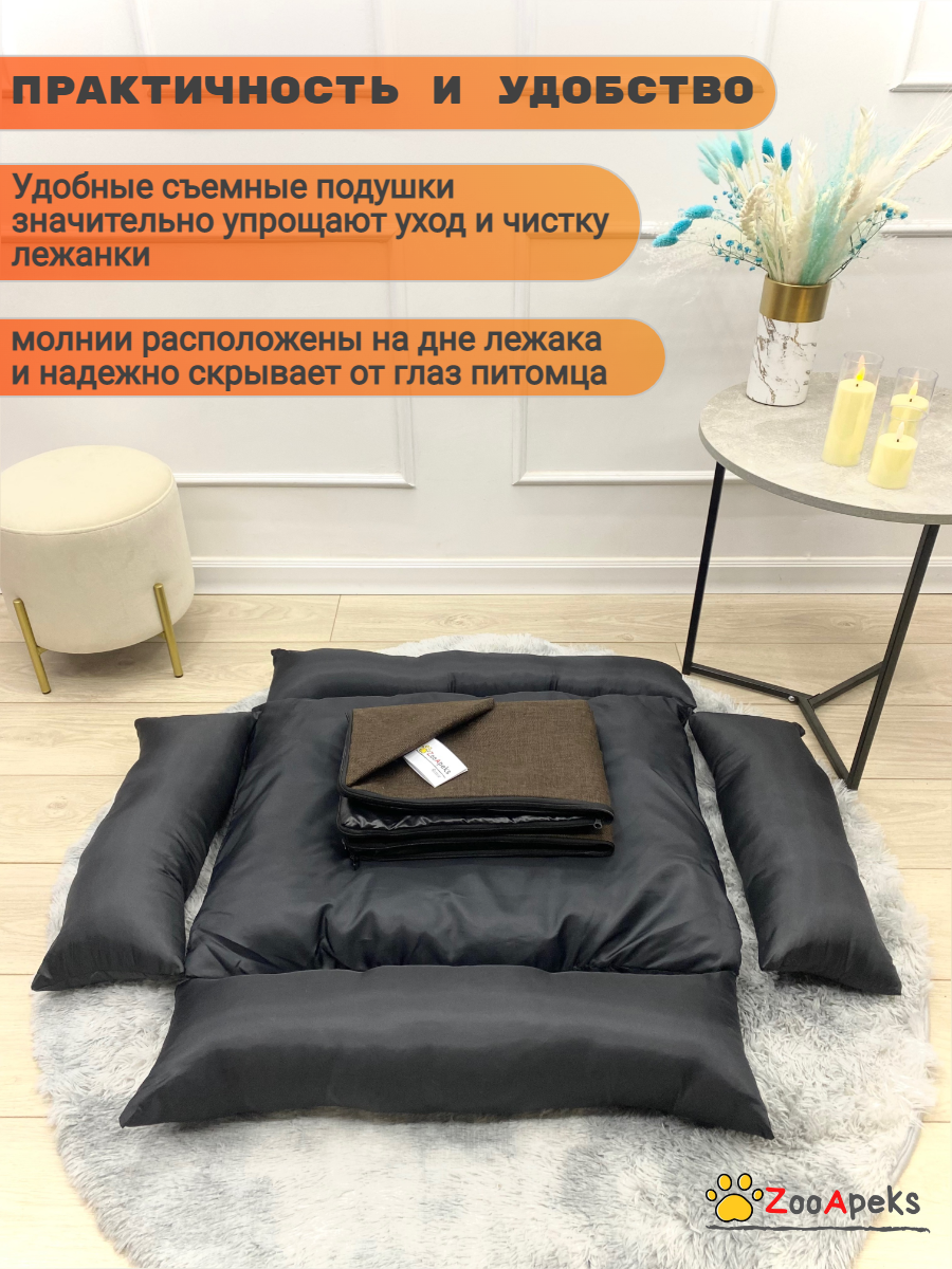 Лежанка для собак со съемным чехлом ZooApeks, для больших и средних пород собак и кошек, размер 100х70 см джинса