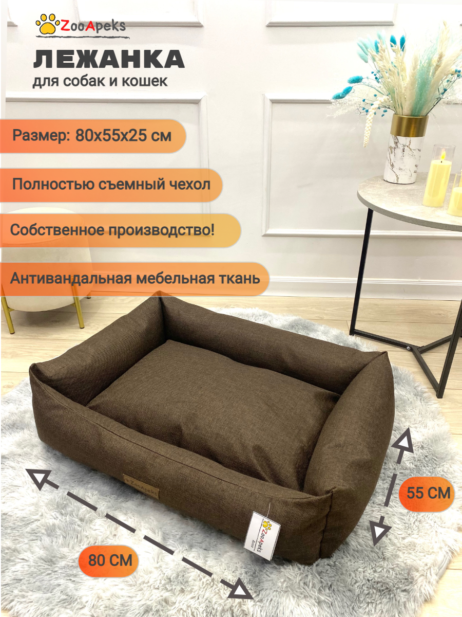Лежак-диван для собак, для кошек, для животных средних больших пород, съемный чехол, рогожка, цвет льняной 100х70х30 см ZooApeks