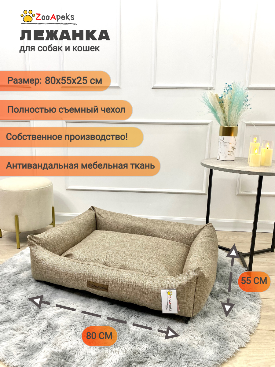 Лежак-диван для собак, для кошек, для животных средних больших пород, съемный чехол, рогожка, цвет льняной 100х70х30 см ZooApeks
