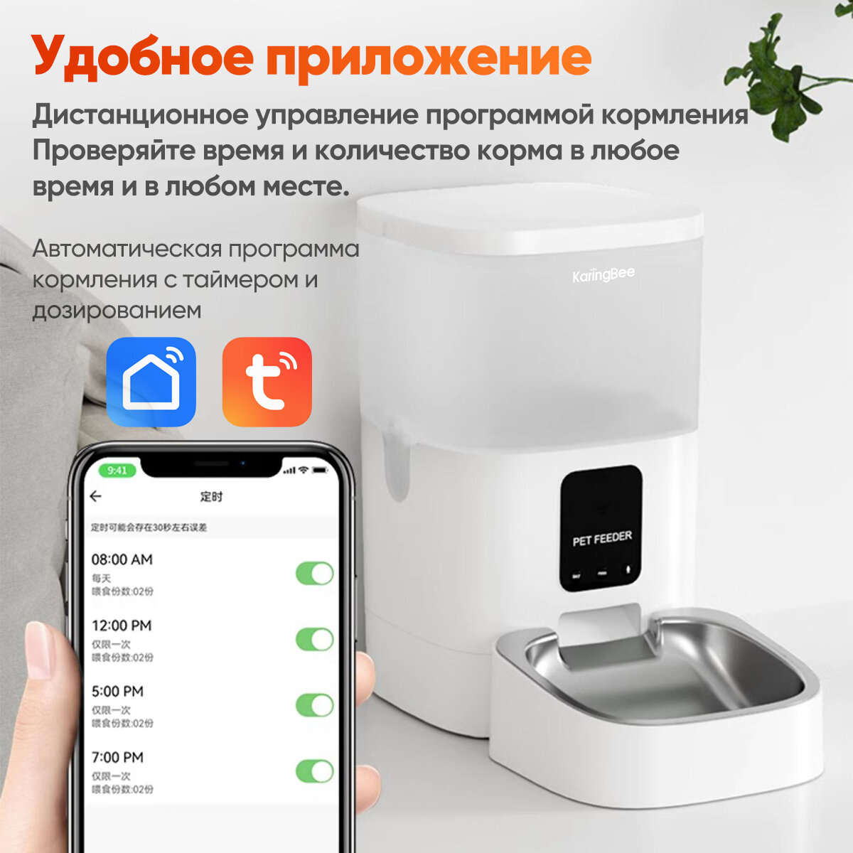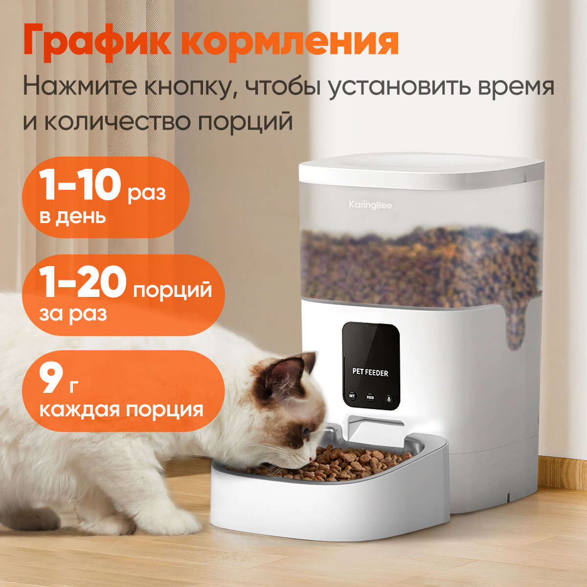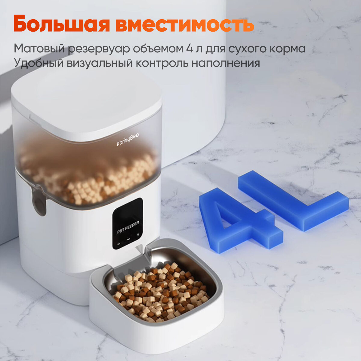 Умная автоматическая кормушка для кошек и собак KaringBee 4L, управляемая с помощью Wi-Fi-приложения, кнопка управления, подходит для всех домашних животных, KW-4 информация: