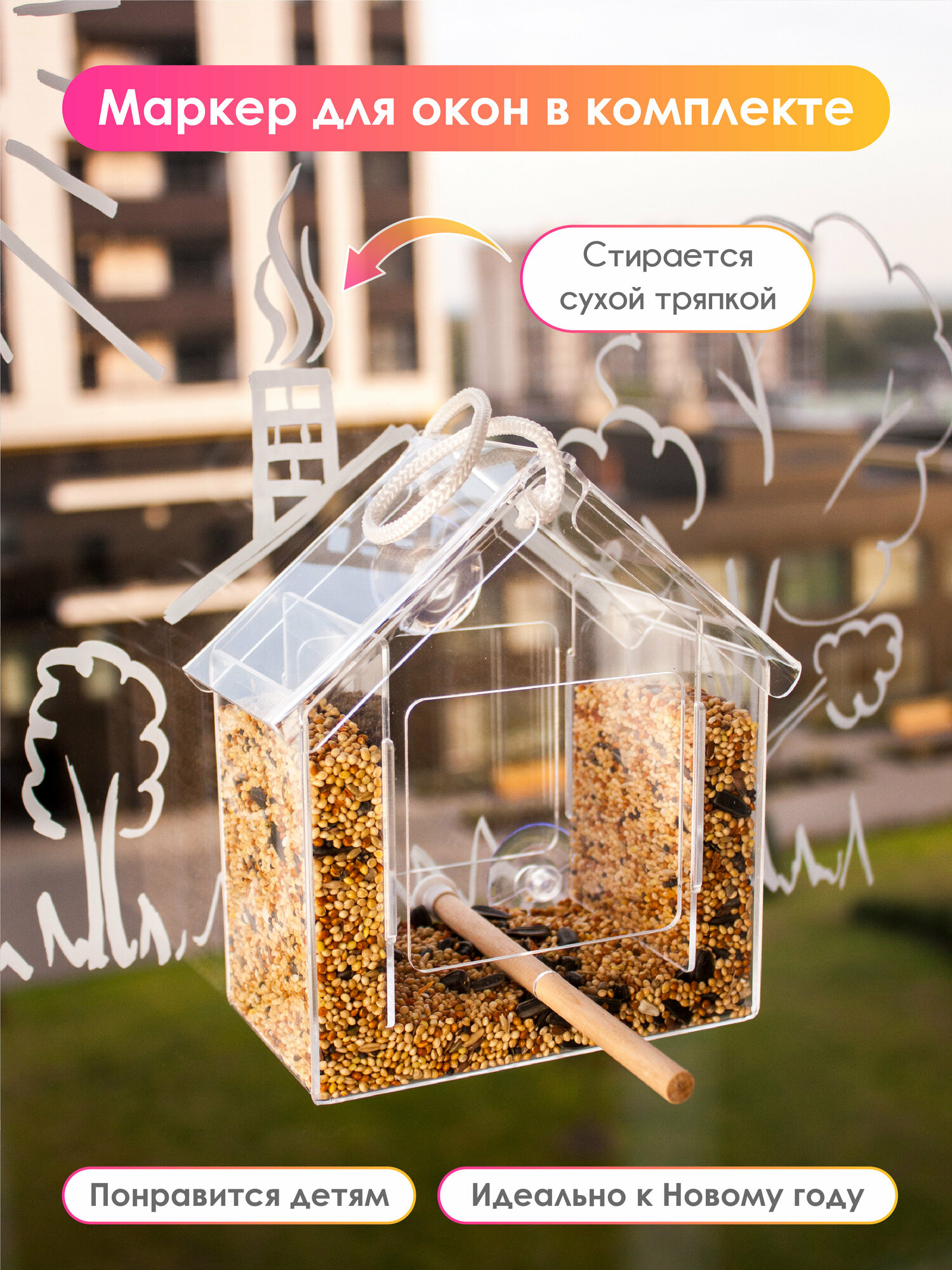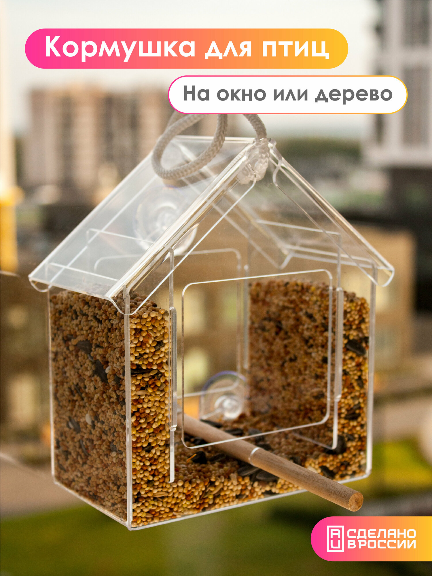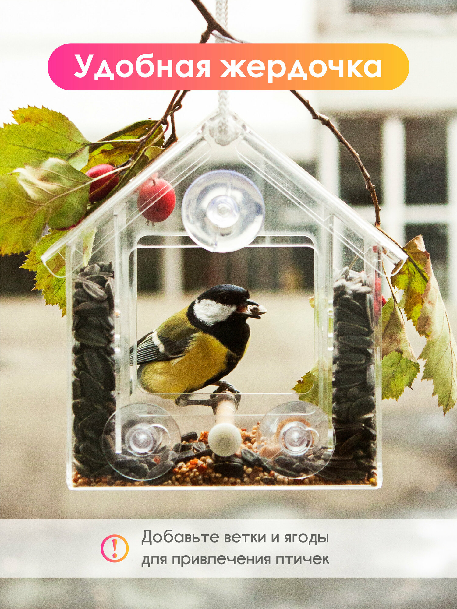 Кормушка для птиц прозрачная на окно информация: