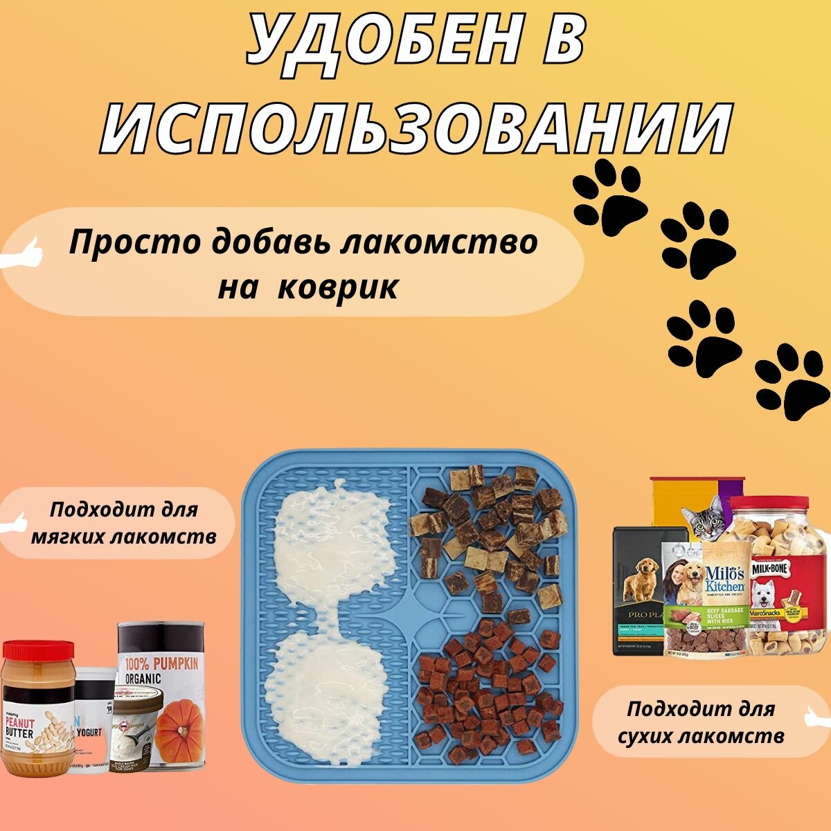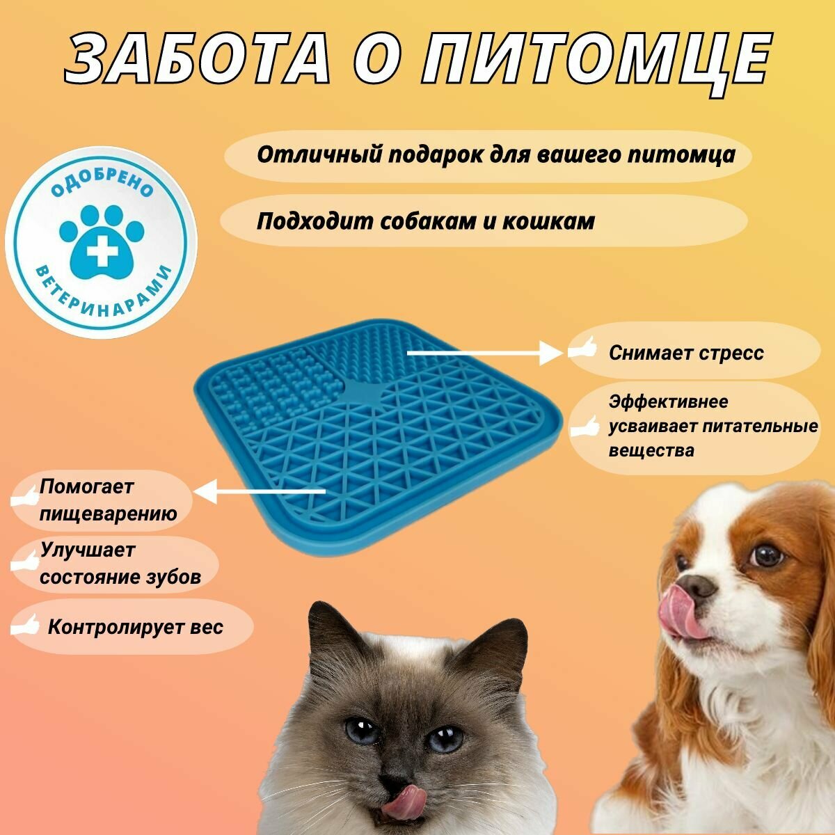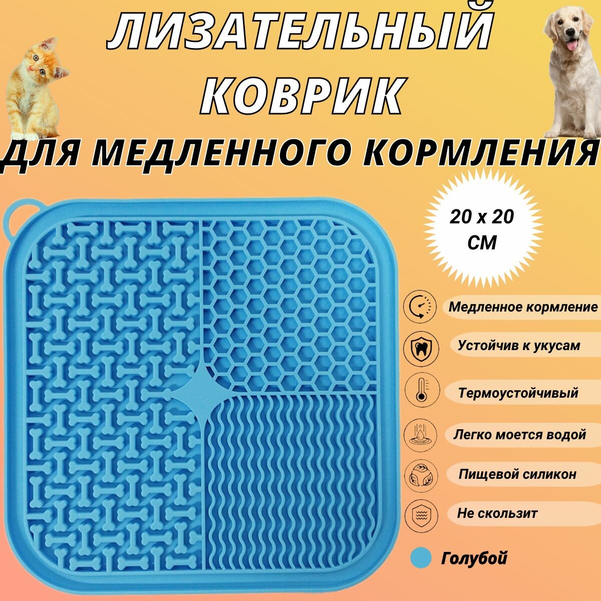 Отзывы на Лизательный коврик "Косточка", для медленного кормления собак и кошек, голубой 20х20 см