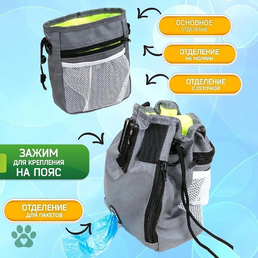 Отзывы на Сумка для лакомств, для прогулок с собакой, для дрессировки, цвет серый