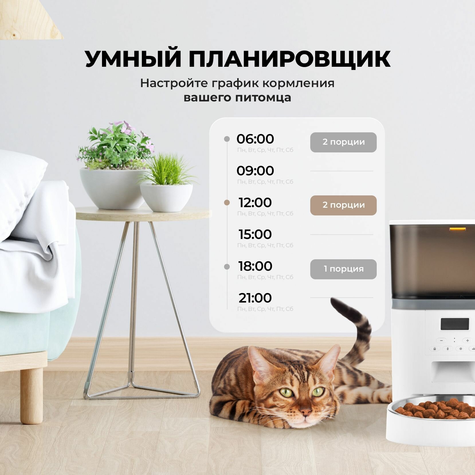 Автоматическая кормушка для кошек и собак PetPaw, 3,5 литра, на 4 подачи корма, белая 4 399 ₽