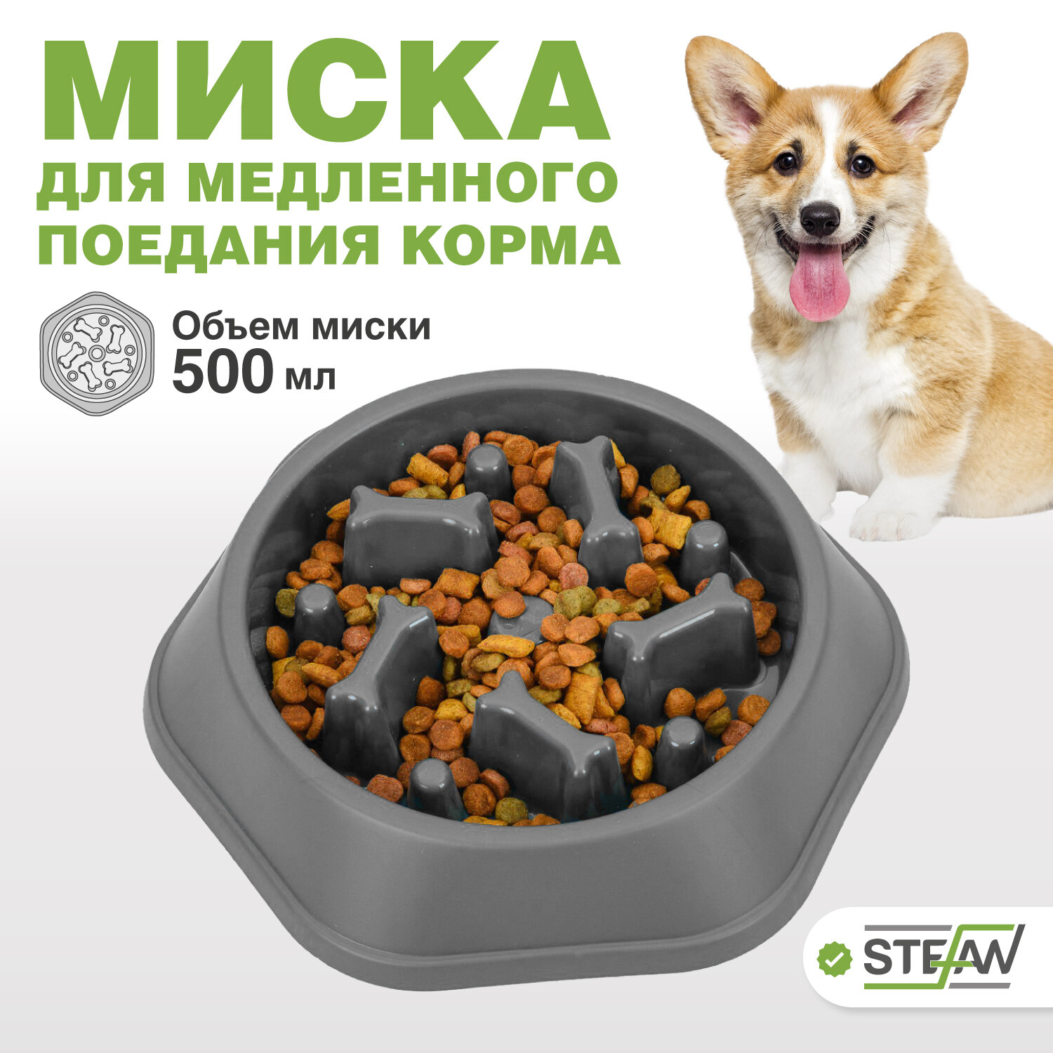 Миска для медленного поедания Косточки STEFAN, серый, W02101 информация: