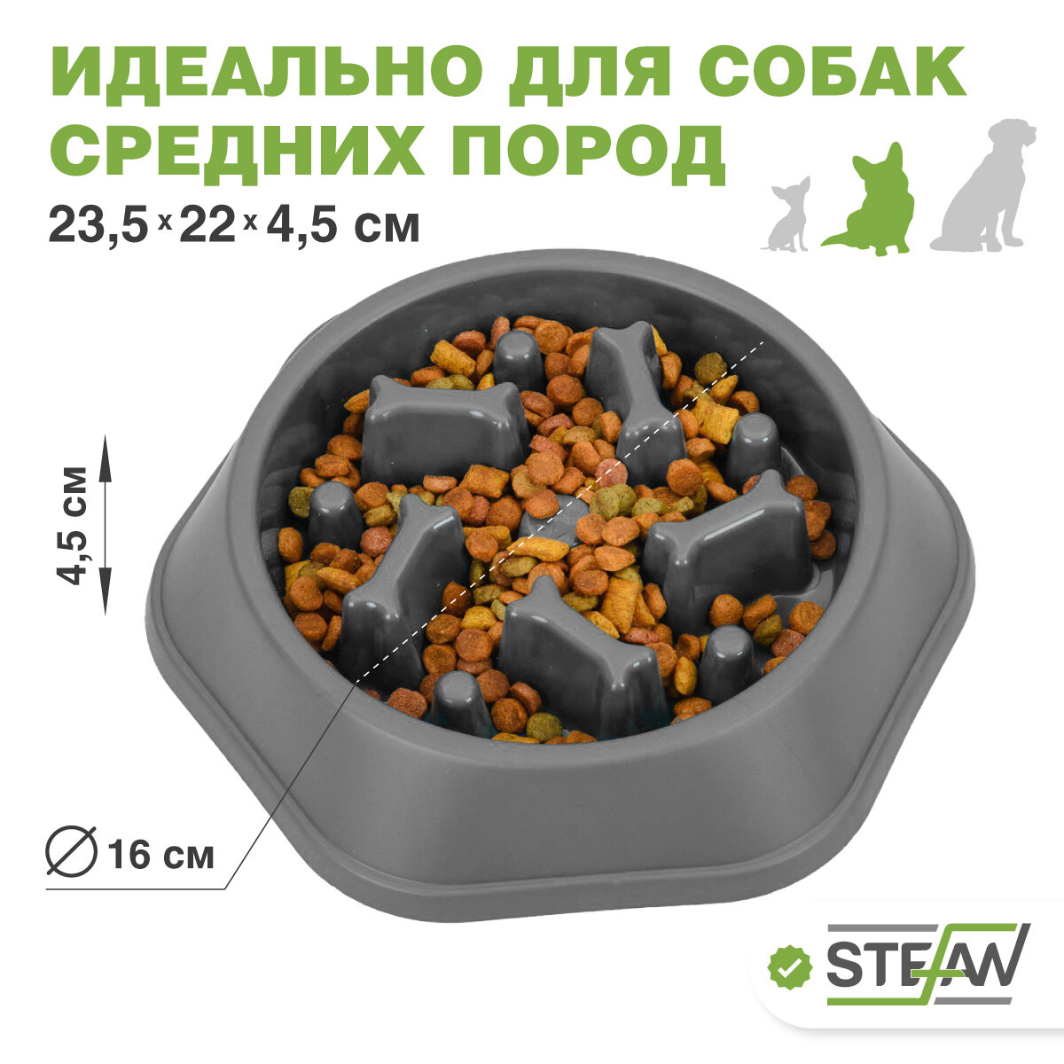 10 цен на Миска для медленного поедания Косточки STEFAN, серый, W02101