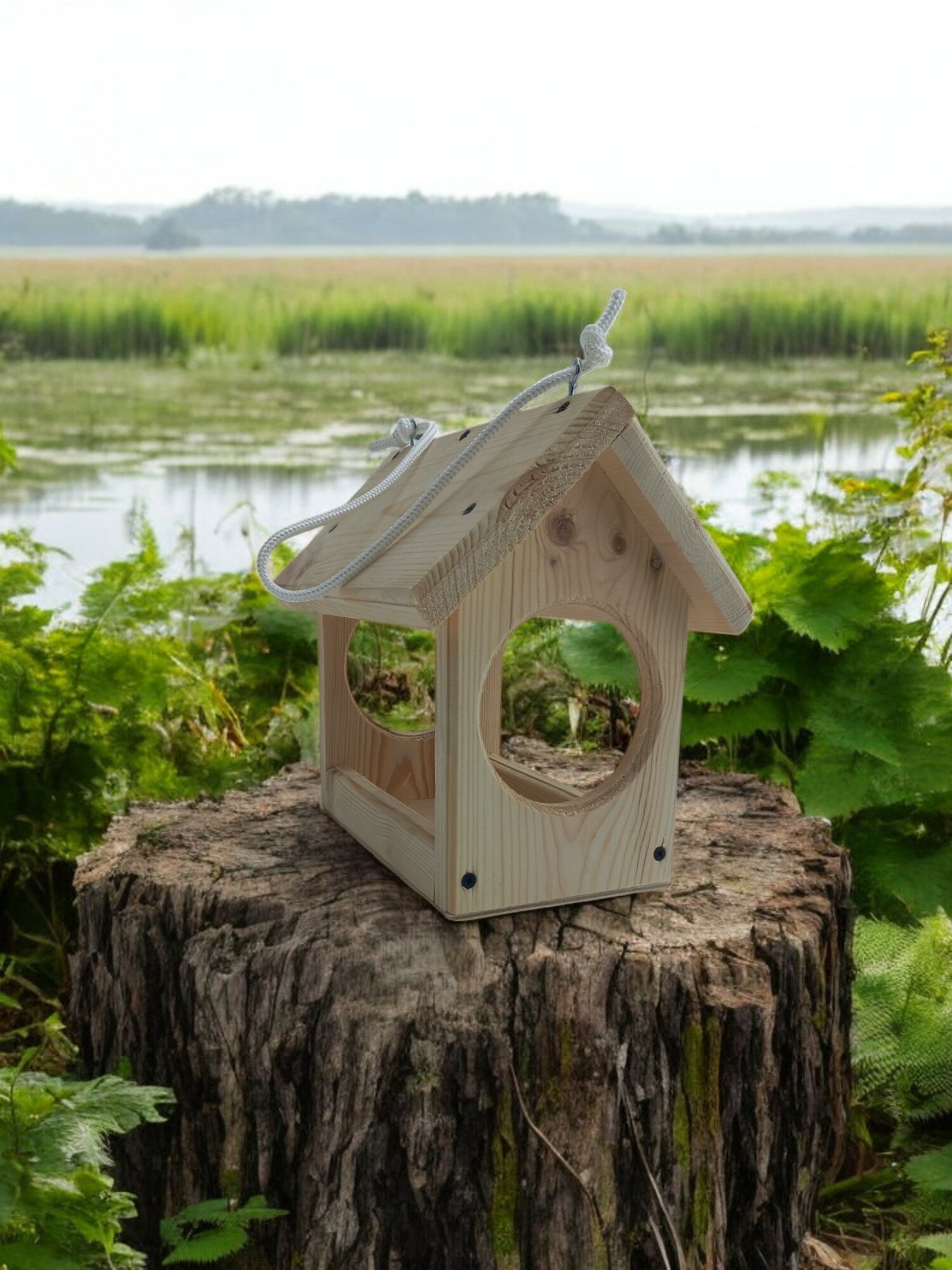 Кормушка для птиц, кормушка садовая, деревянная кормушка, подвесная