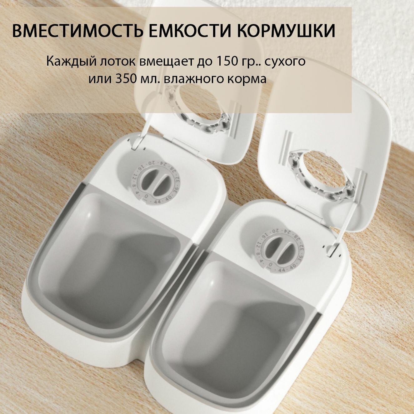 Кормушка автоматическая для влажного корма / Автокормушка для кошек и собак (Двойная, цвет серый) информация: