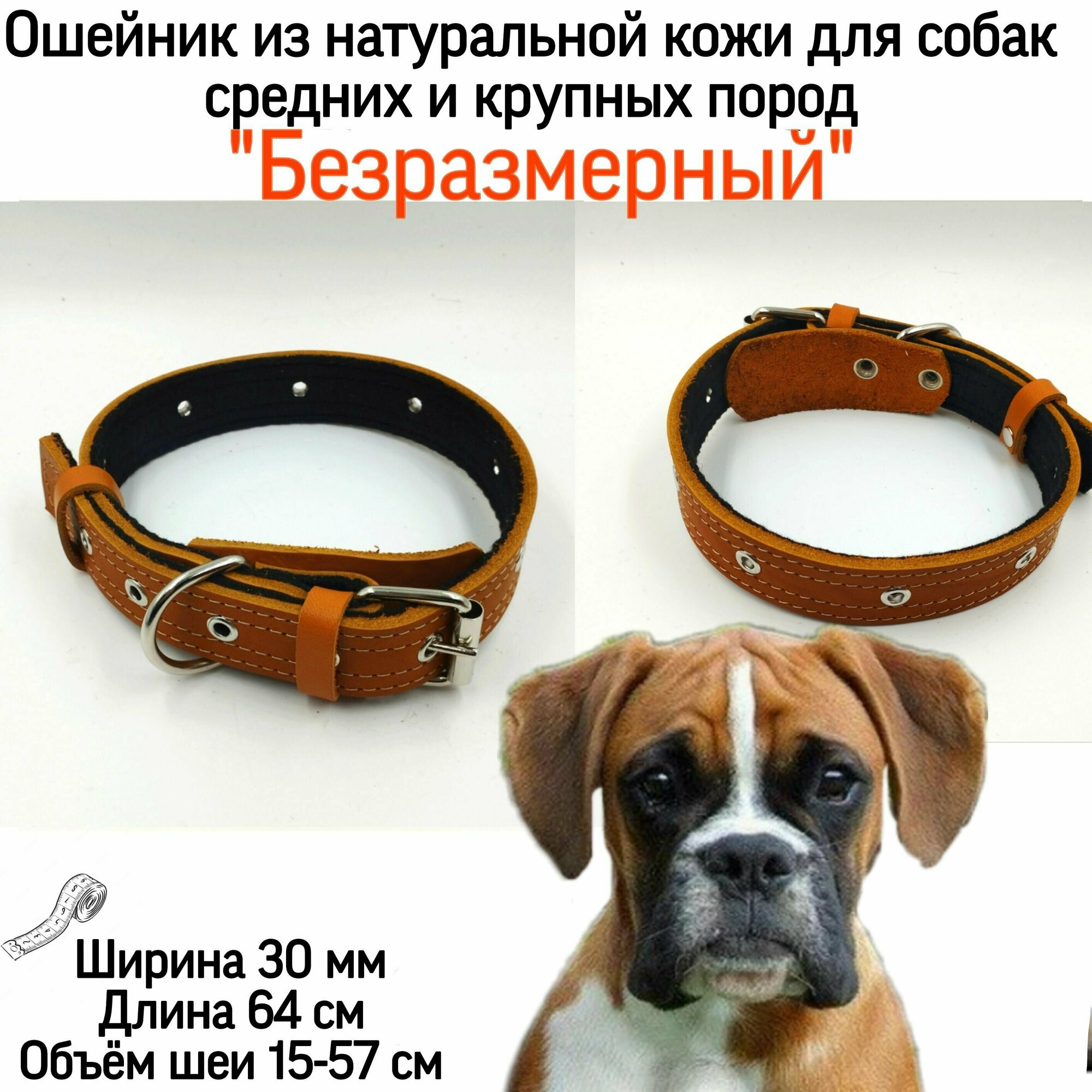 Кожаный ошейник собак средних и крупных пород, 30 мм *64 см , обхват шеи 15-57 см информация: