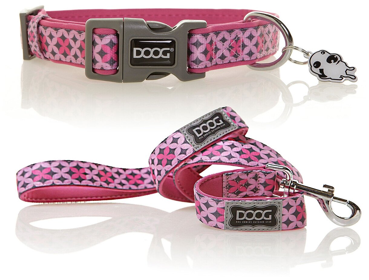 10 цен на Ошейник и поводок для собак DOOG "Toto", розовый с узором, M, 32-46см/130х2.5см, комплект