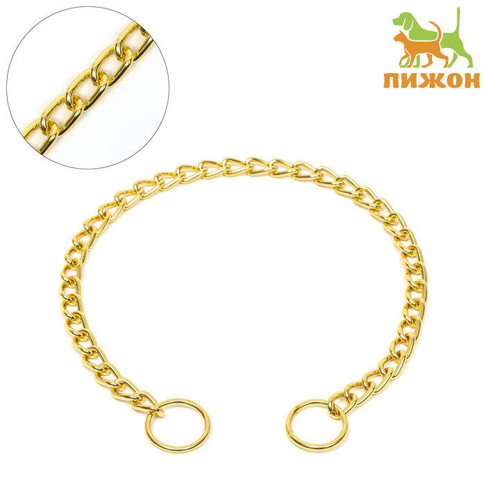 Ошейник - удавка металлический однорядный, 60 см, толщина проволоки 3 мм, золотистый информация: