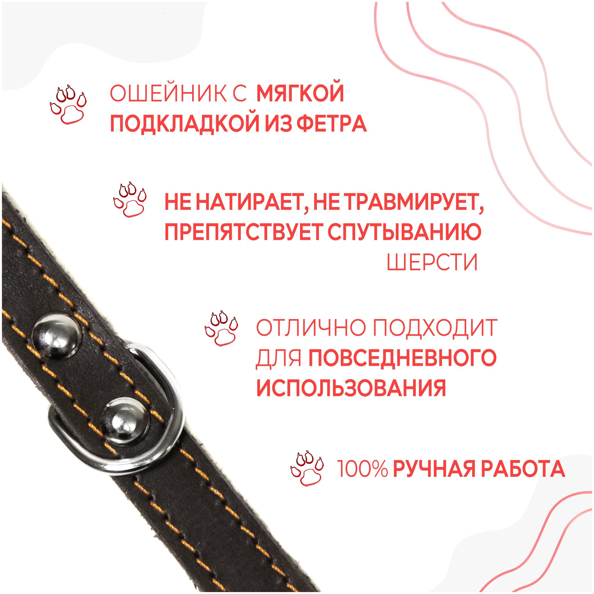Кожаный ошейник (обхват шеи 21-26,5 см.) на фетре для небольших щенков и маленьких собак / коричневый информация: