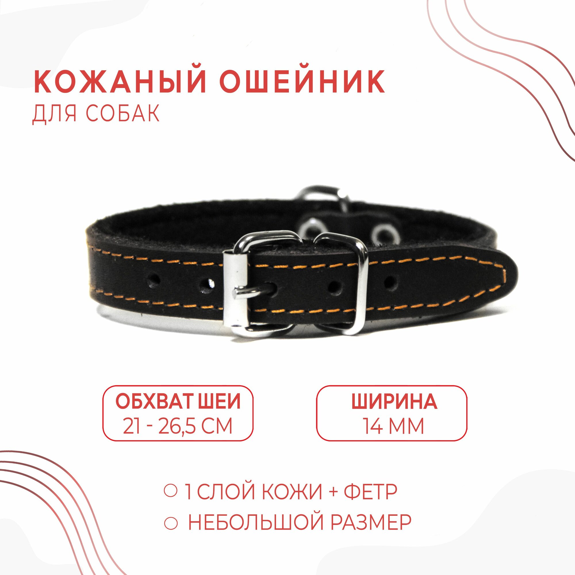 Отзывы на Кожаный ошейник (обхват шеи 21-26,5 см.) на фетре для небольших щенков и маленьких собак / черный