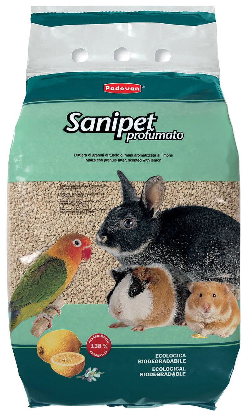 Наполнитель Padovan Sanipet Profumato кукурузные гранулы для грызунов, 4 л, 1 кг информация:
