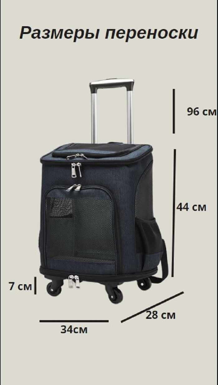 Сумка рюкзак переноска для животных на колесах, синяя информация: