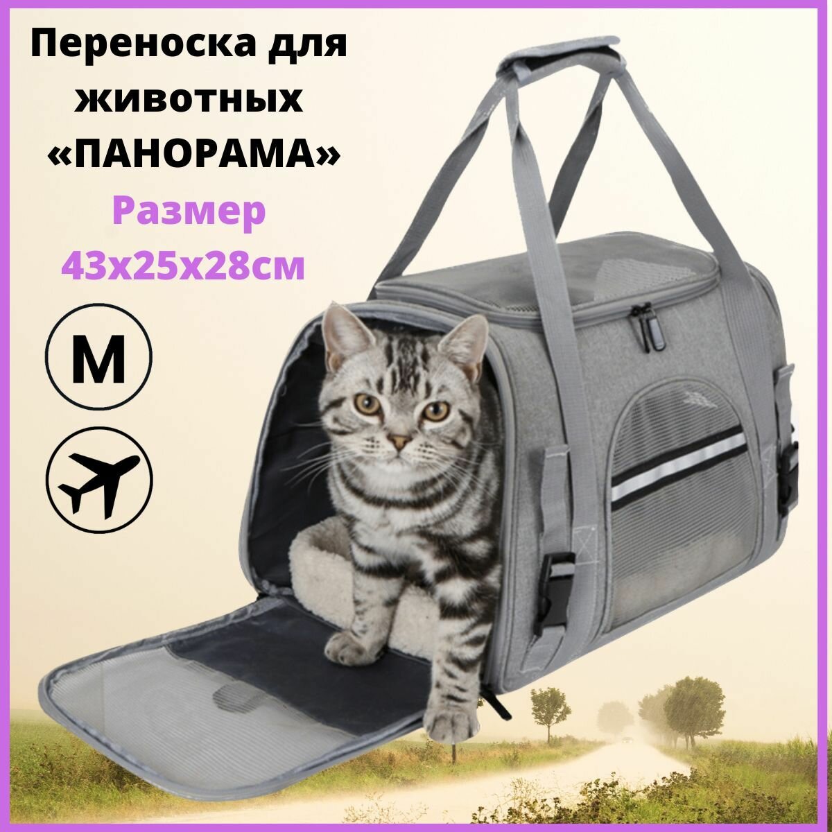 Переноска для кошек, для собак, для животных "панорама" 43Х25Х28 СМ информация:
