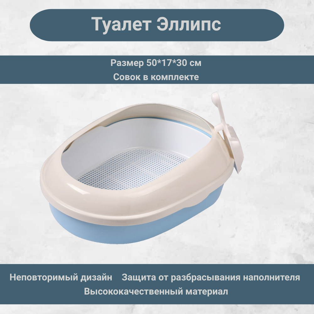 Отзывы на Туалет для кошек Triol P541A овальный с бортом (совок и сетка в комплекте), голубой, 50х37х17 см