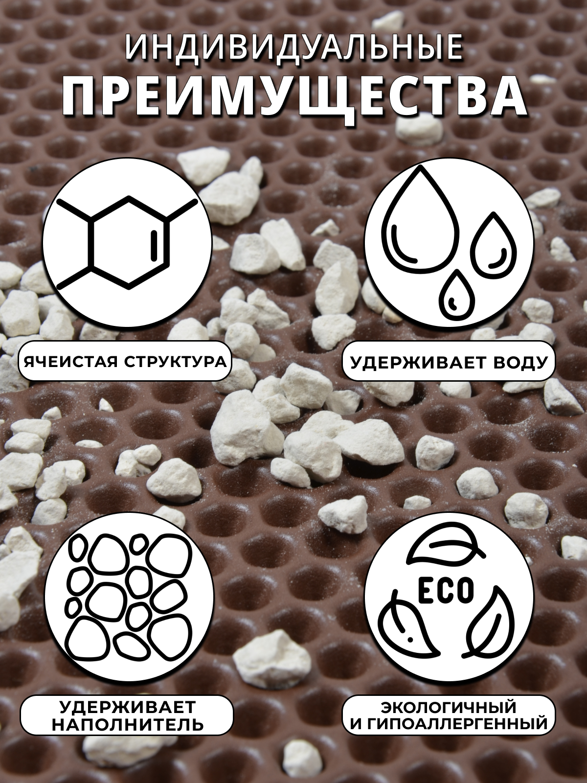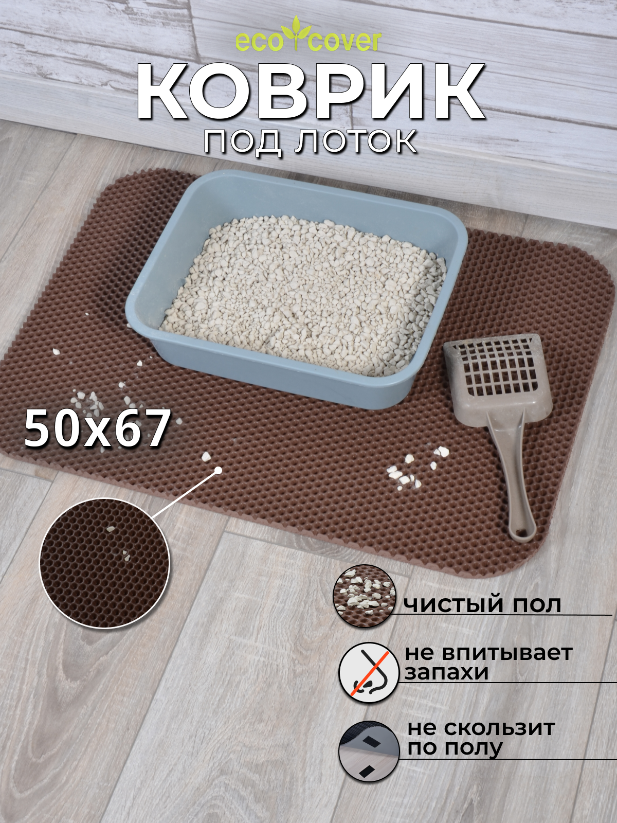 Коврик под лоток ячеистый соты, 50х67 см, коричневый информация: