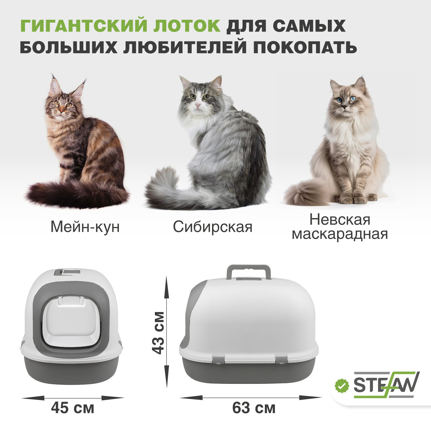 Отзывы на Большой лоток-домик для кошек STEFAN, закрытый лоток с высокими бортами (XL), 63х41х43, серый, BP1901N