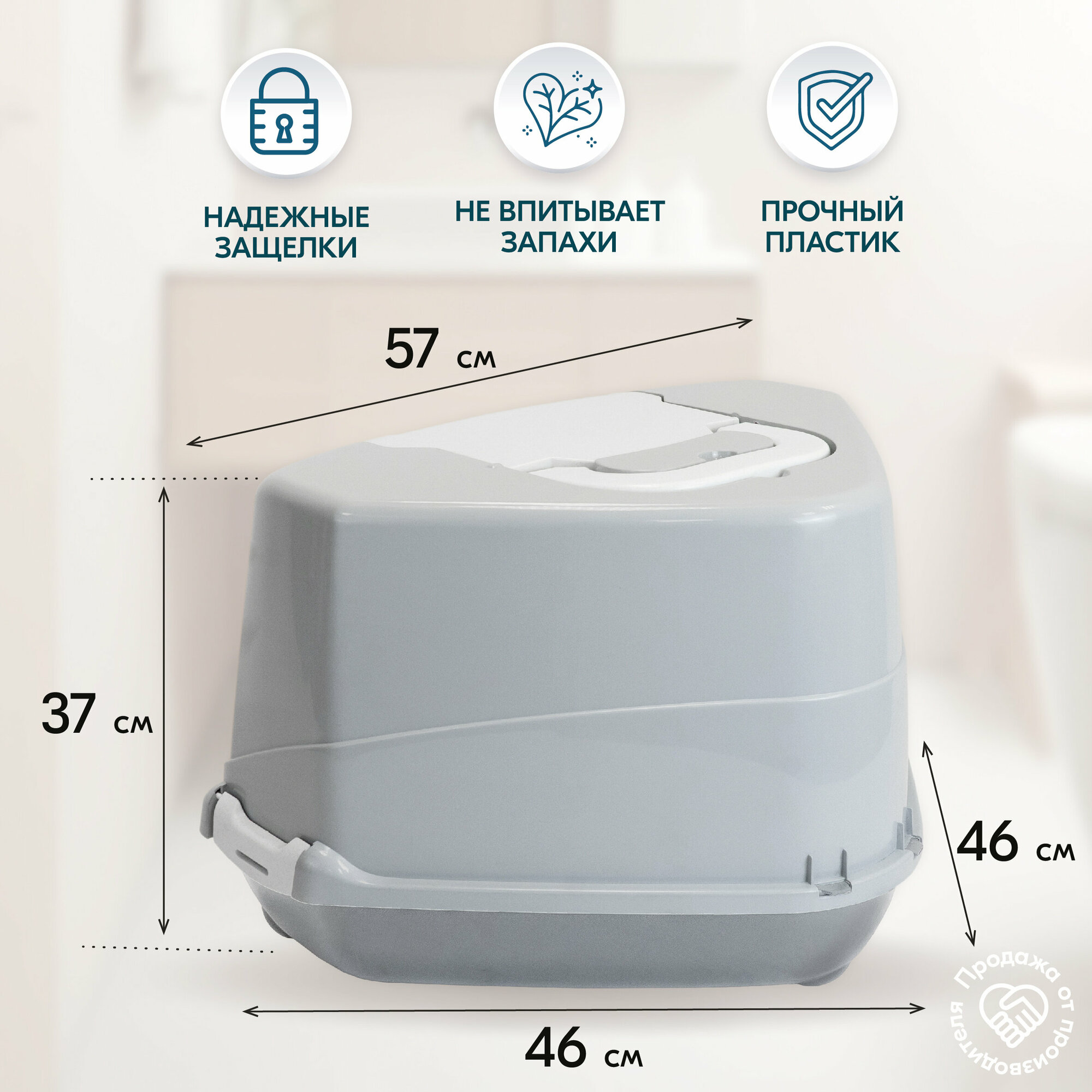 Отзывы на Туалет для кошек угловой, лоток закрытый и совок "PetTails" домик с дверцей 57 х 46 х 37 см, светло-серый