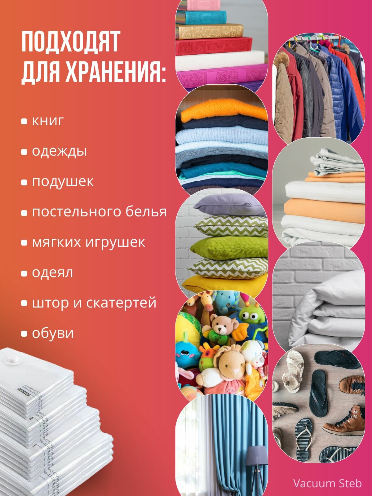 Вакуумные пакеты для одежды и вещей 12 штук информация: