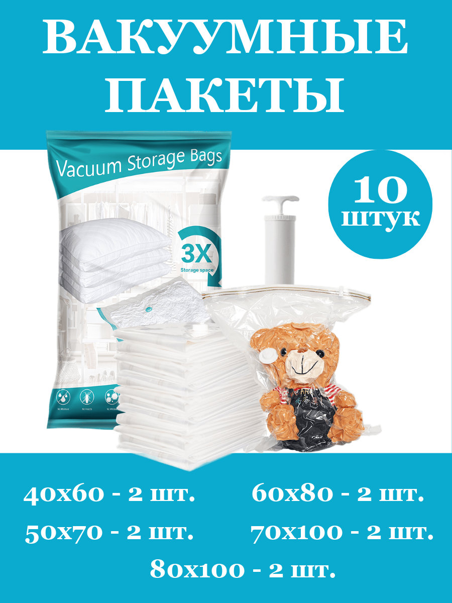 Вакуумные пакеты для вещей и одежды, 10 штук информация: