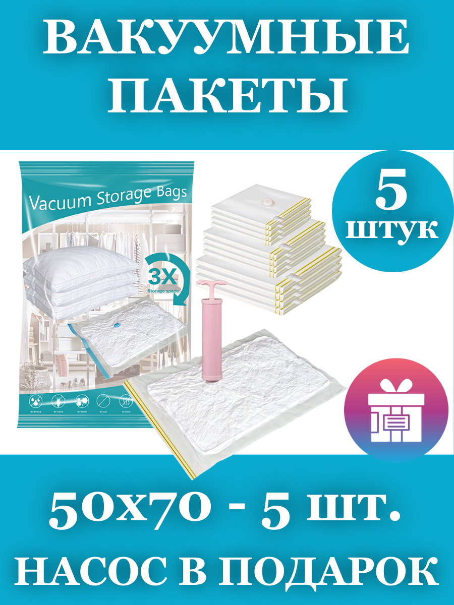 Вакуумные пакеты для вещей и одежды 50x70, 5 штук информация: