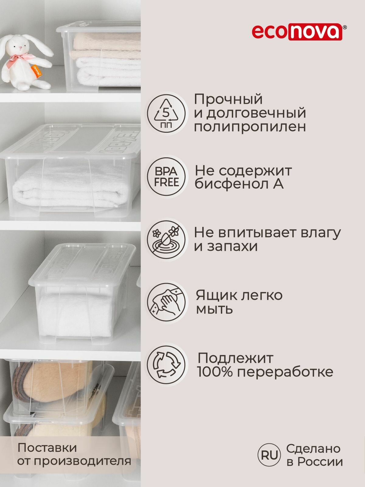 | Комплектация | Ящик универсальный с крышкой Tex-box 10 литров, 38*28*14 см (прозрачный), Econova |