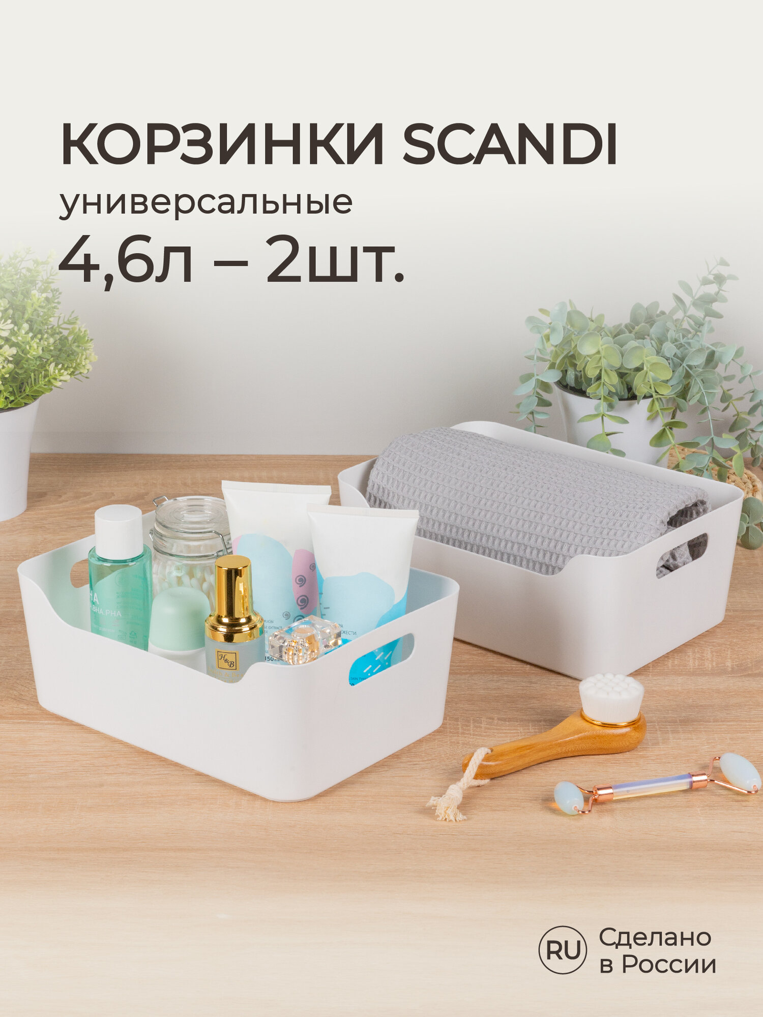 | Комплектация | Набор корзинок универсальных Scandi, 27x19x10,5 см, 4,6 л, 2 шт (Белый) |