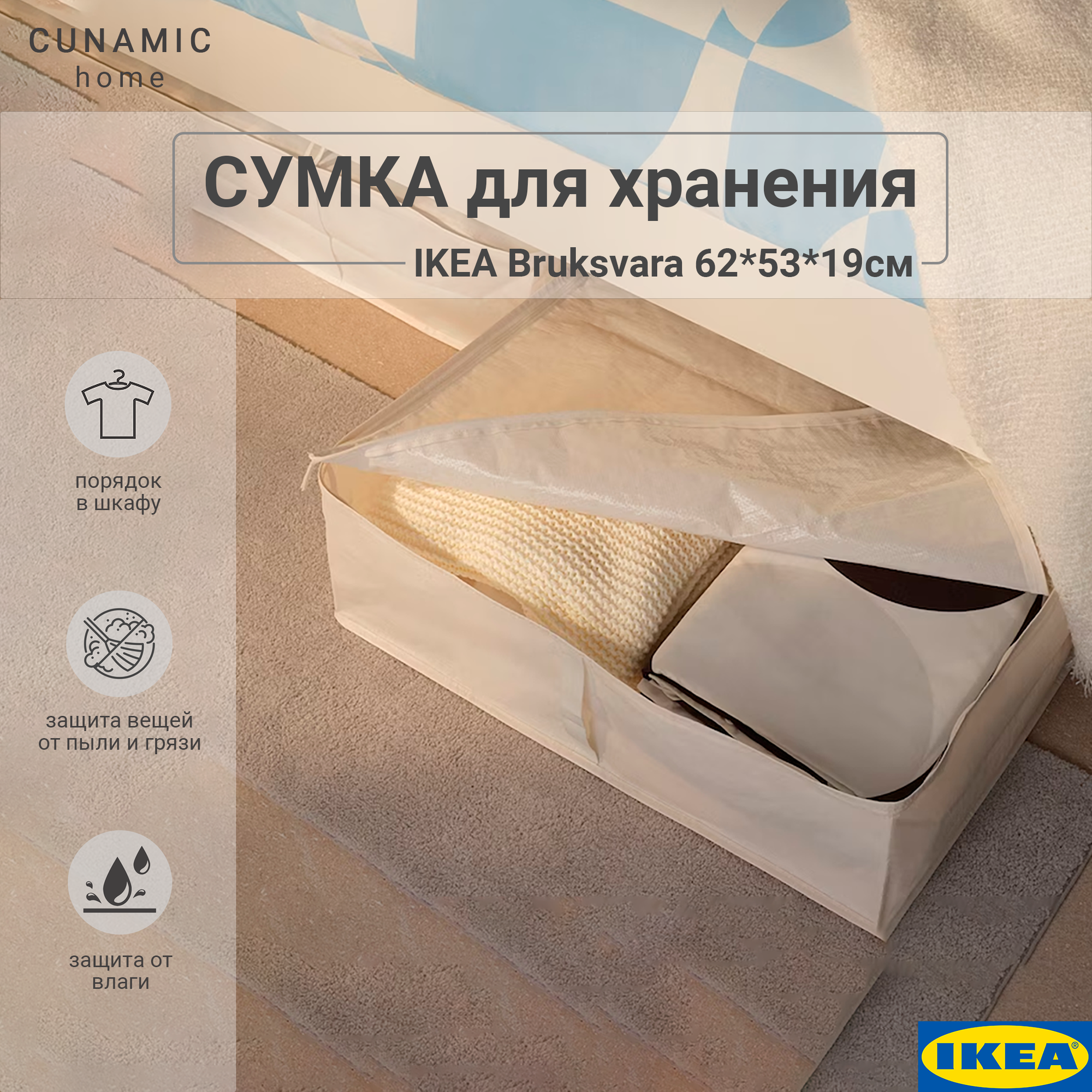 10 цен на Сумка для хранения BRUKSVARA бруксвара IKEA, 62x53x19, органайзер для вещей, белый не прозрачный
