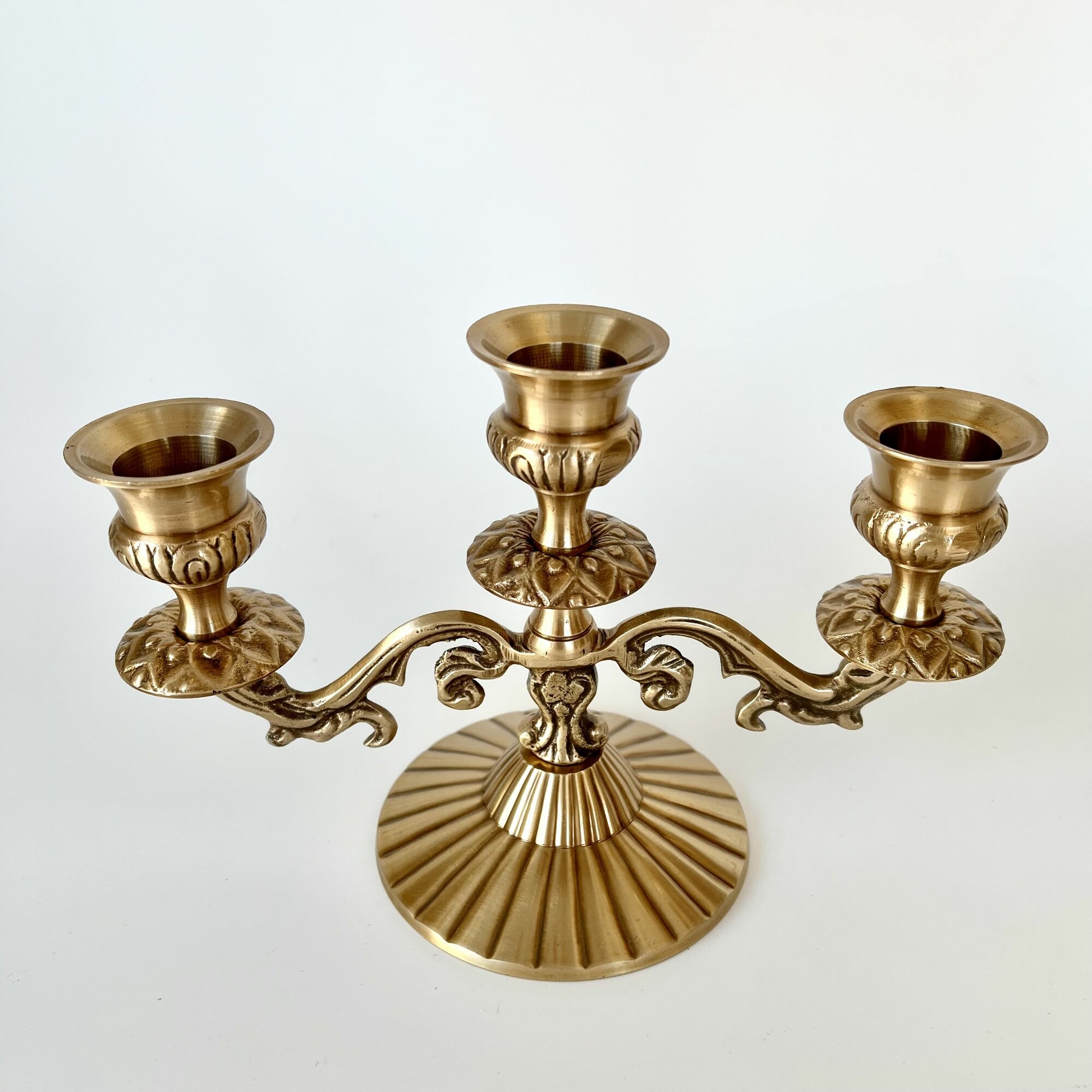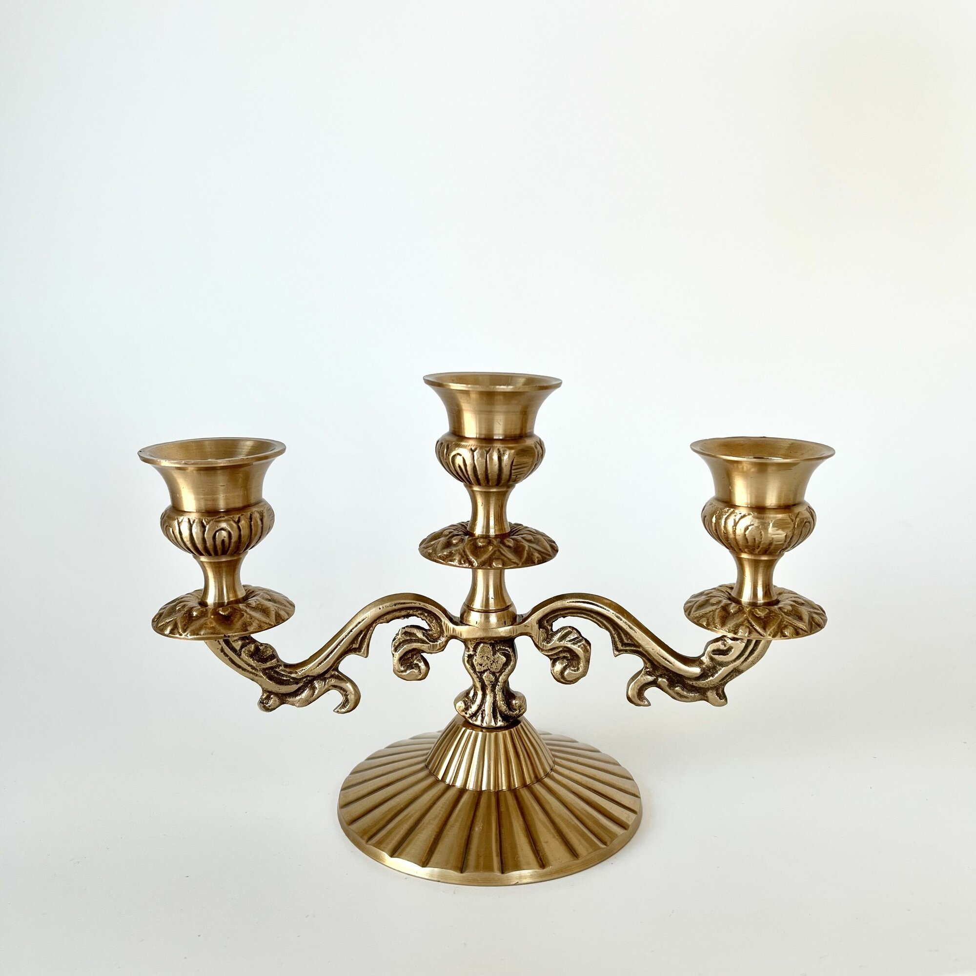 Подсвечник (канделябр) латунный трёхрожковый на 3 свечи,19х13х9см, Индия, золотистого цвета 3 500 ₽