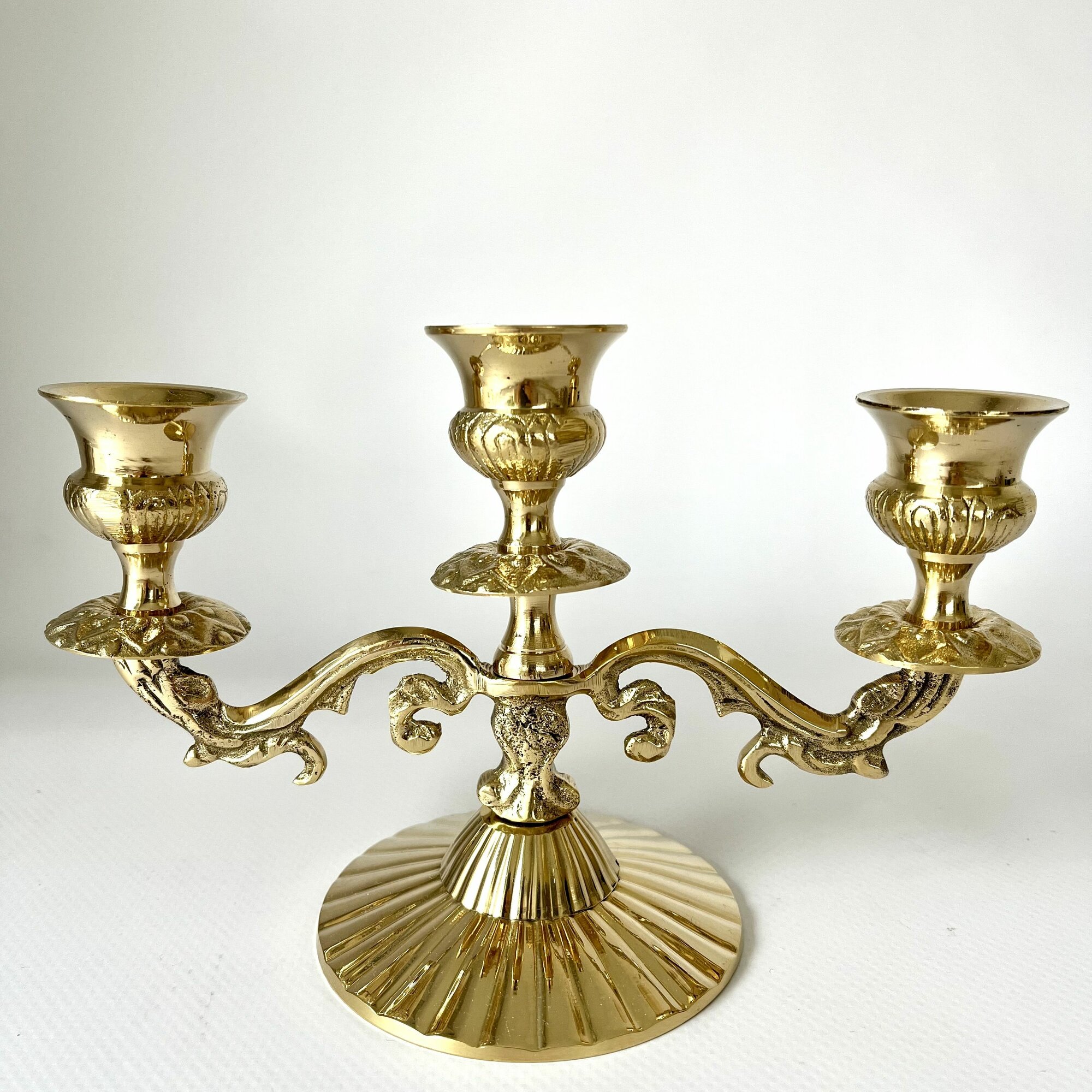Подсвечник (канделябр) латунный трёхрожковый на 3 свечи,19х13х9см, Индия, золотистого цвета информация: