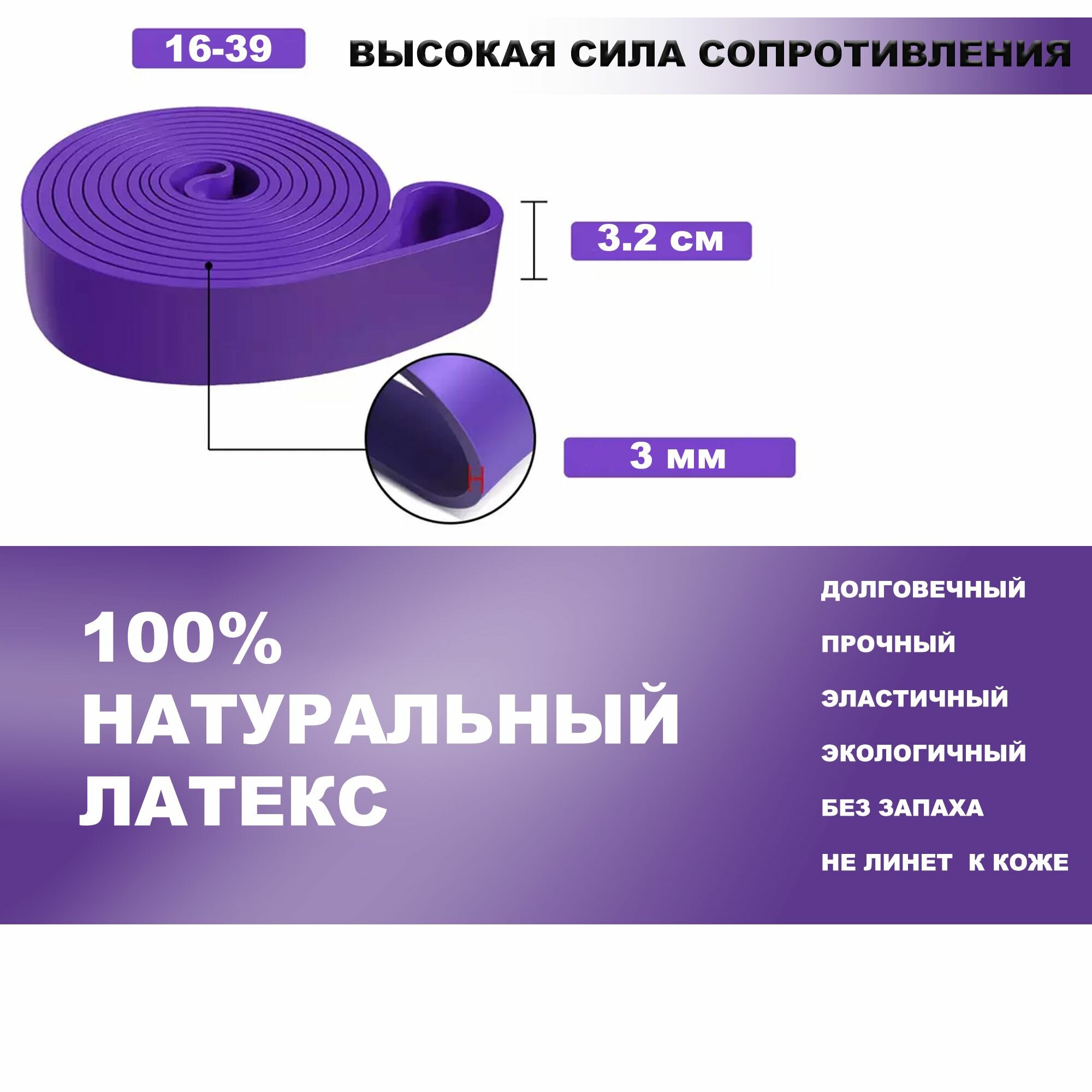 Фитнес резинка -эспандер длинная для подтягивания на турнике, растяжки, силовых, нагрузка 16 до 39кг информация: