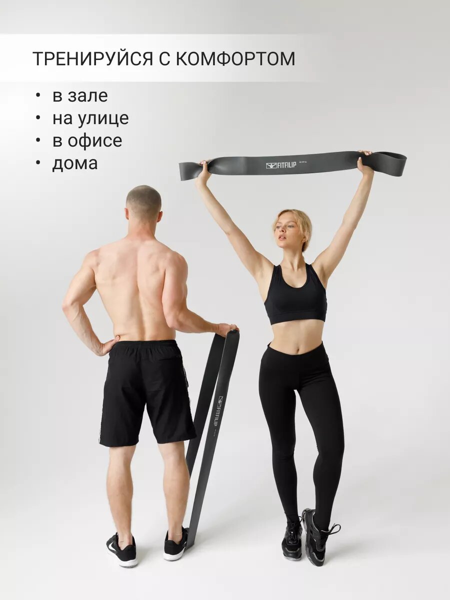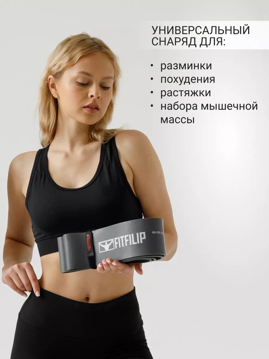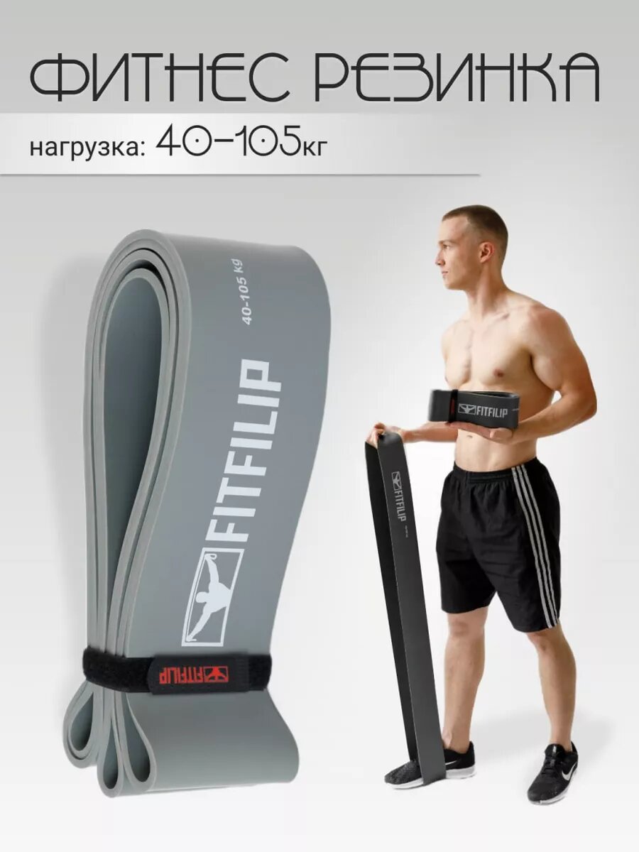 10 цен на Фитнес резинка серая 40-105 кг эспандер жгут петли
