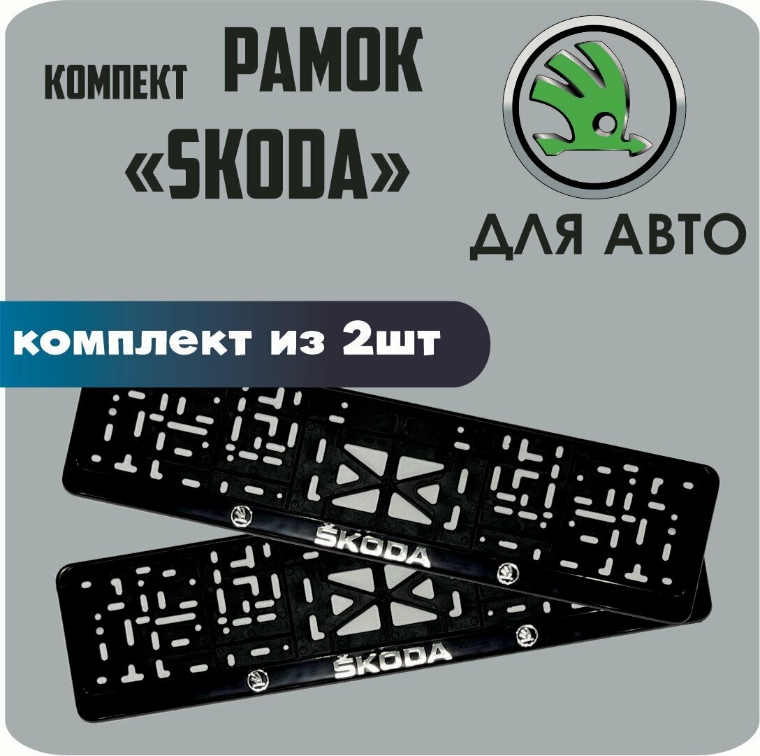 Рамки автомобильные, для автомобильных номеров, с надписью "Skoda", 2 штуки. информация: