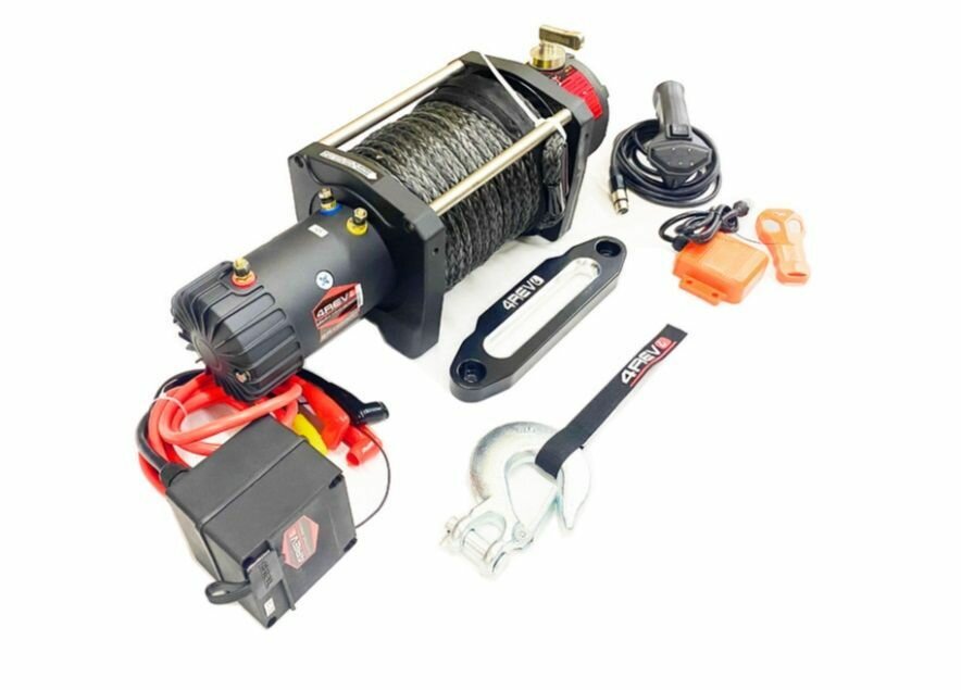 Лебедка индустриальная 12 вольт 4REVO SRX 22000LBS / 9980 кг., синтетический трос информация: