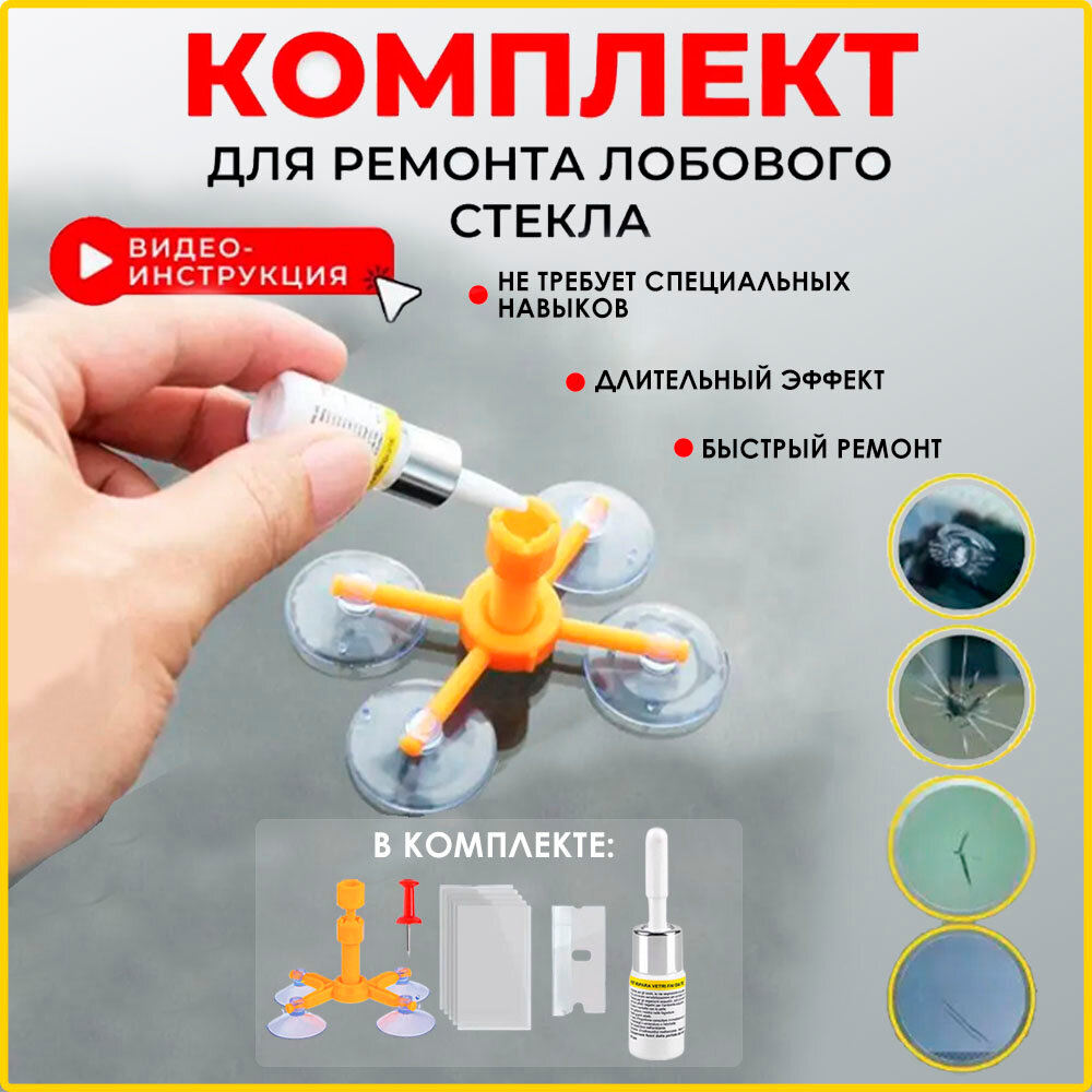 10 цен на Комплект для ремонта лобового стекла автомобиля. Ремкомплект сколов и трещин.