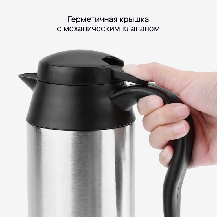 Автомобильный электрический чайник Mypads подогреваемый от прикуривателя для воды из нержавеющей стали c LED-дисплеем 1000 мл 24V серебристый