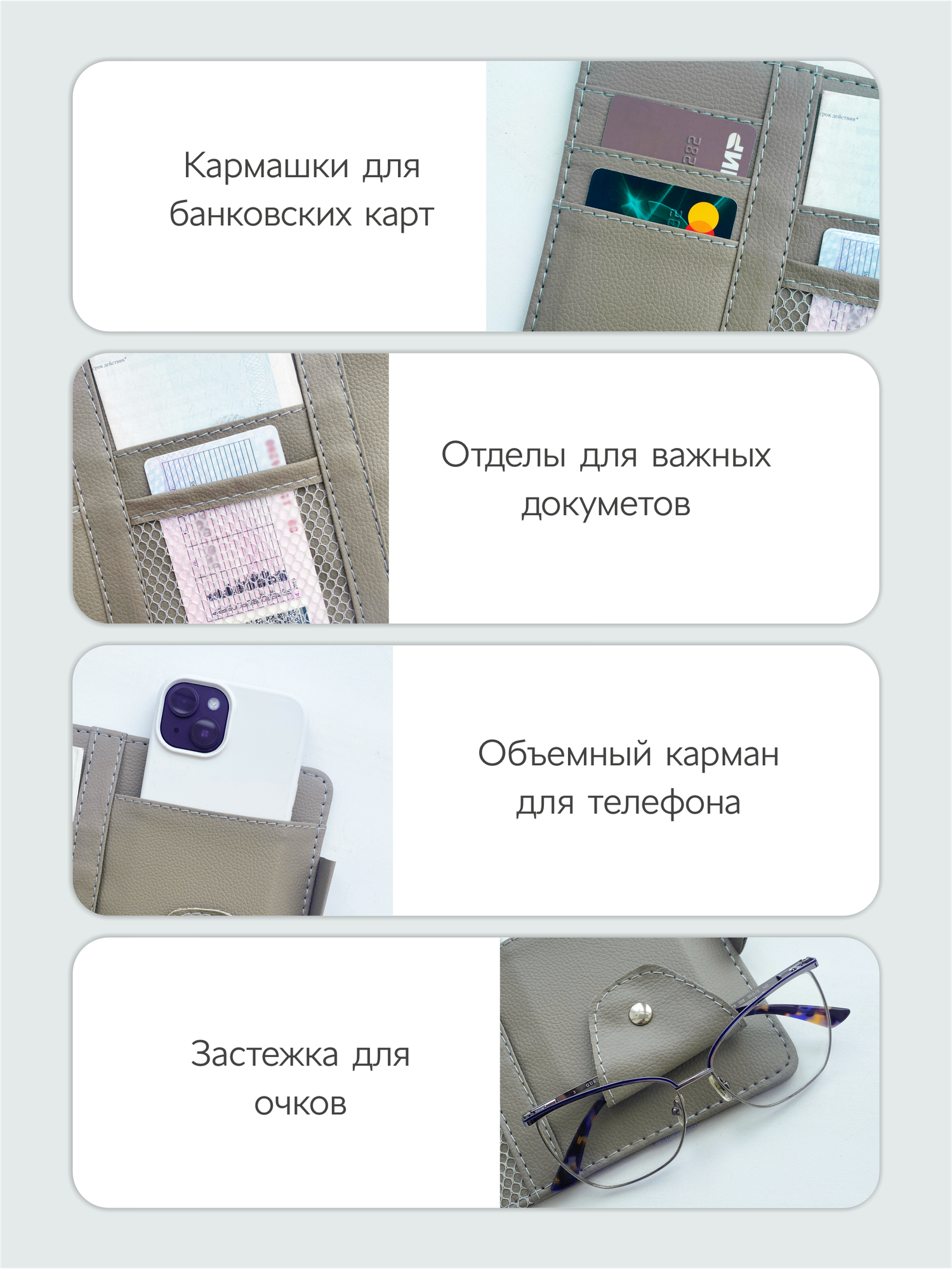 Отзывы на Органайзер подвесной для автомобиля на солнцезащитный козырек для документов, оливковый
