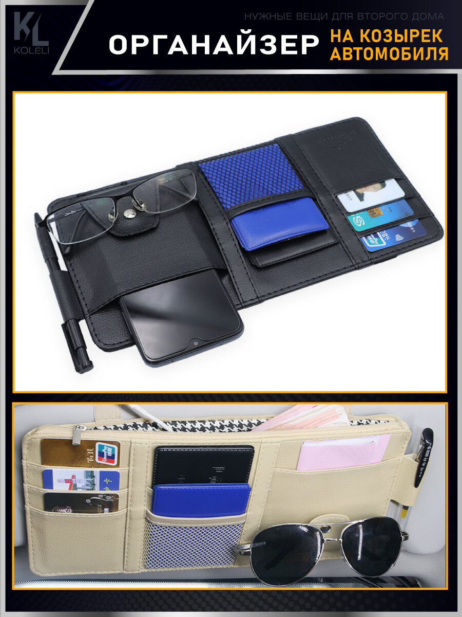 Отзывы на KoLeli / Органайзер на козырек автомобиля, держатель для очков, хранение вещей в машине, черный