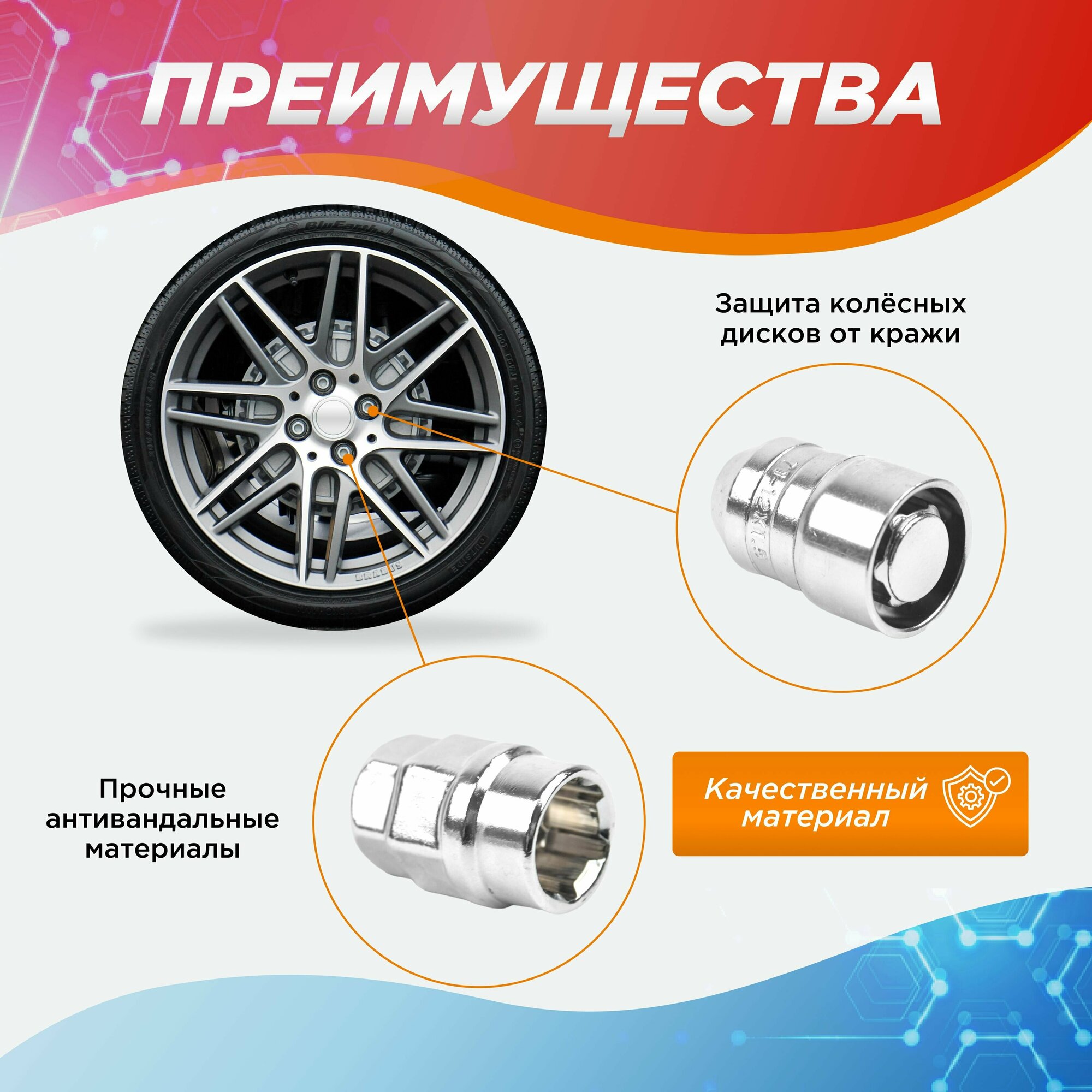 Секретные гайки/ Колесные секретки резьба M12х1,5/ секретки / секретки на колеса