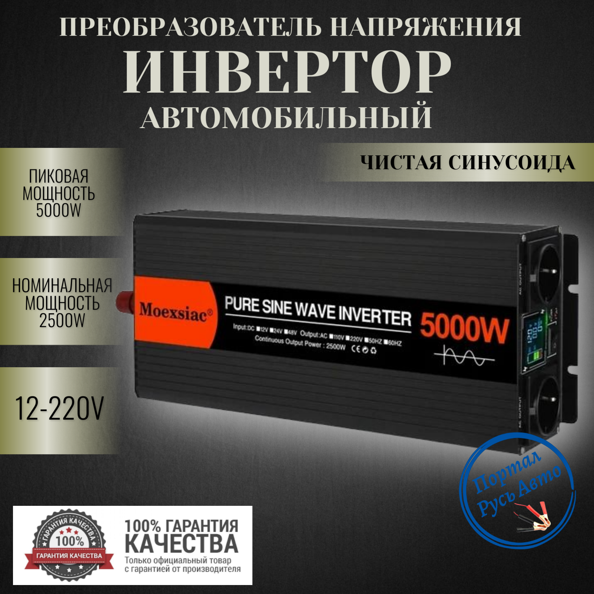 Автомобильный преобразователь напряжения инвертор MOEXSIAC 5000w 12v-220v Power inverter Чистый синус. информация: