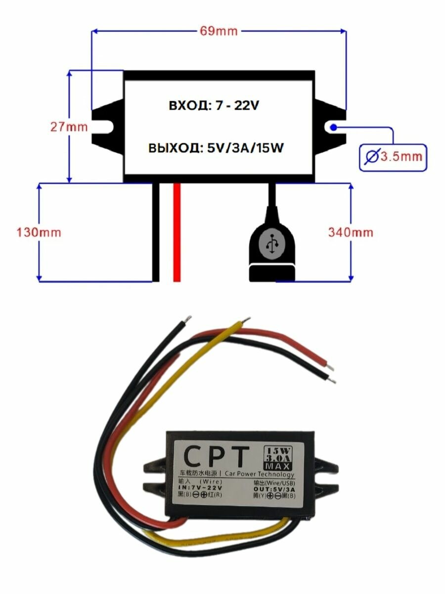 Конвертер, преобразователь напряжения DC-DC 12 - 5V 3A USB информация: