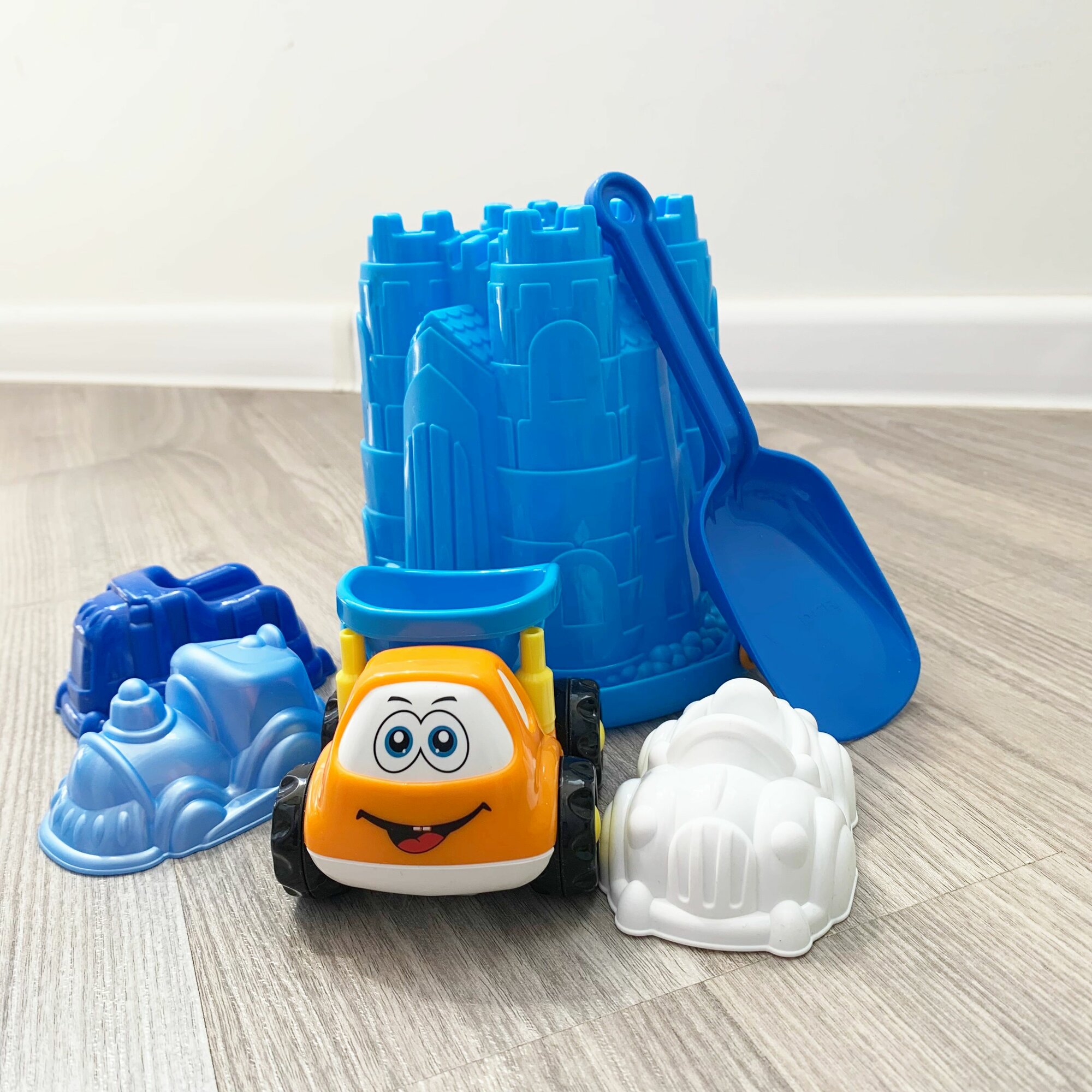 10 цен на Песочный набор для мальчика с инерционным самосвалом с глазками, с 3D формочками машинками, ведром Замок 1,6 л. - синий