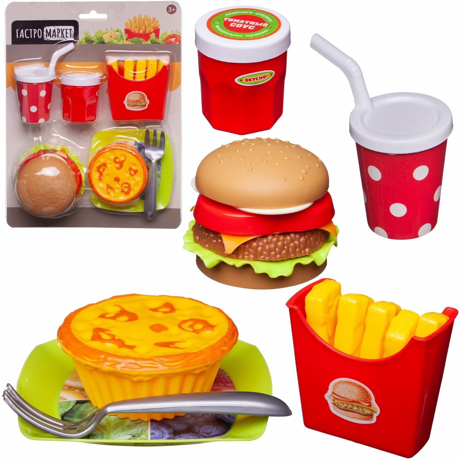 Отзывы на Игровой набор Abtoys Гастромаркет Набор продуктов (бутерброд, картошка, 2 напитка, маффин, тарелка, вилка) PT-01815