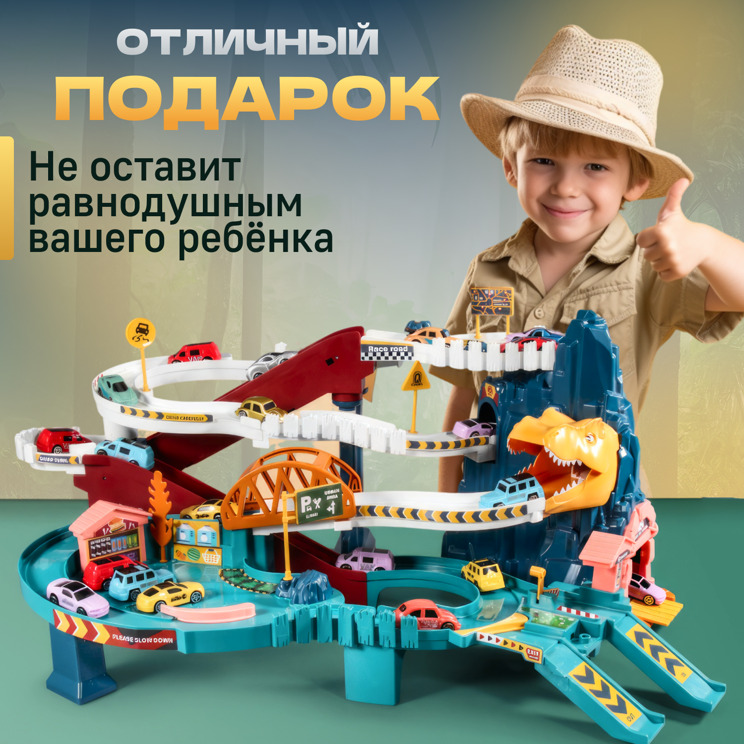 Автотрек Динозавр парковка для машинок игрушка для мальчиков и девочек 4 машинки в комплекте информация:
