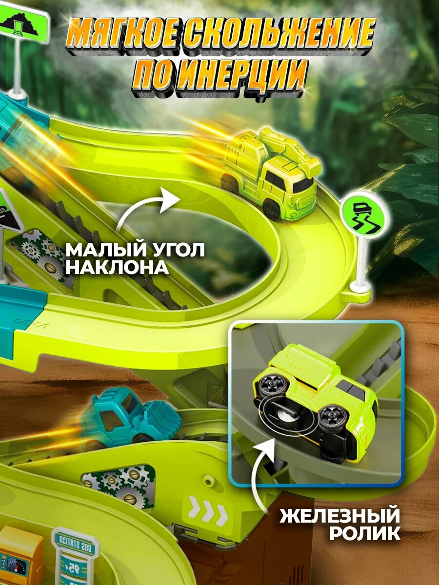Автотрек с динозаврами и машинками Скоростной спуск для мальчиков, аналог хот виллс