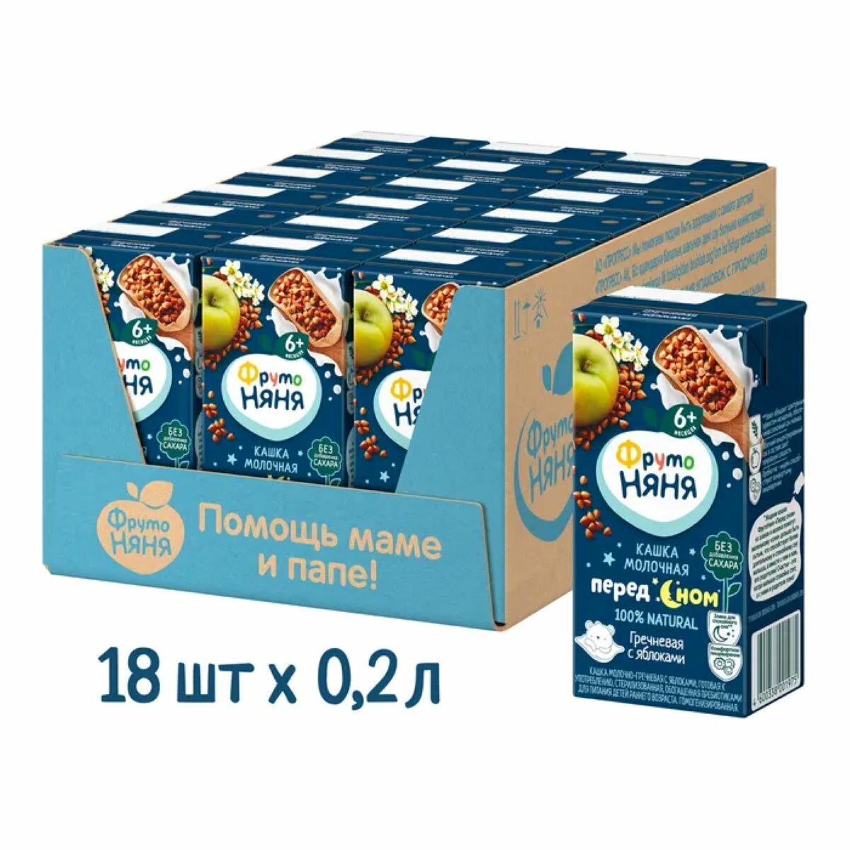 Кашка ФрутоНяня молочная гречневая с яблоком 0,2 л с 6 месяцев, 18 шт информация: